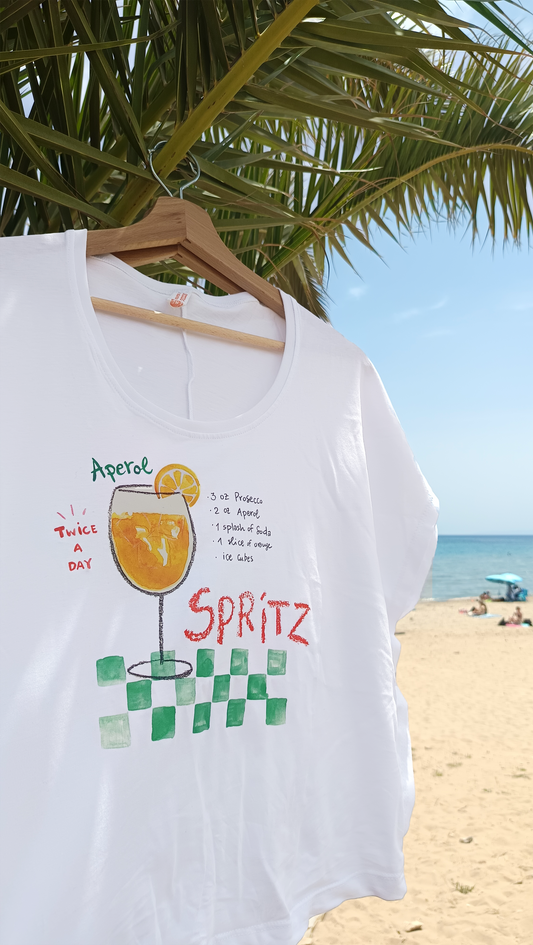 Aperol Spritz-Hand Designed Print Women's Zapone T-Shirt – White