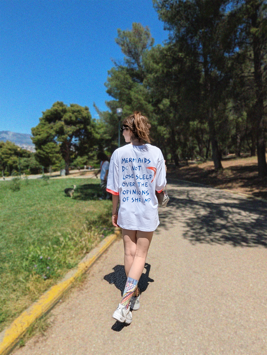 Mermaids Don’t Lose Sleep-Hand Designed Print Women's Oversized T-shirt-White
