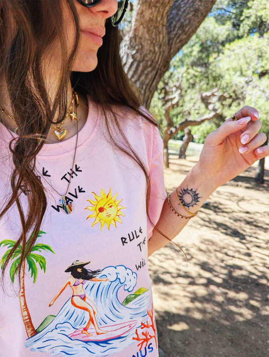 Rule The Wild- Hand Designed Print Oversized Women's T-Shirt – Pink