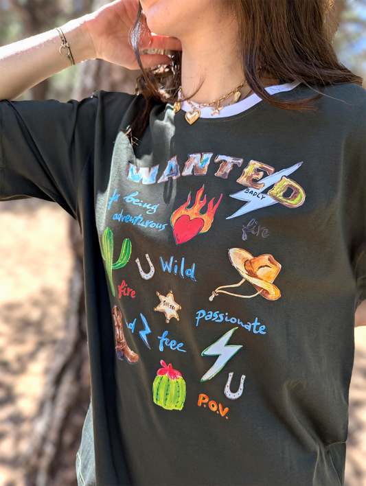 Wanted badly-Hand Designed Print-Oversized Women's T-Shirt-Khaki