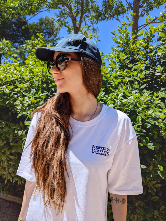 Pirates of Venus-Hand Designed Print Women's Oversized T-shirt-White